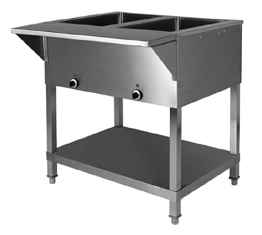 klingers Sealed Well Electric Table sw-2h-120 Sealed well electric table, stationary, 2-pan, 32″wx30-5/8″D,(2)12″x20″hotwells, individual thermostatic controls, 18 gauge stainless steel undershelf, fiber glass insulated, manifold drain assembly, 650 watts, cord with NEMA 5-20P, 120v/60/1-ph, 20 amps, ETL